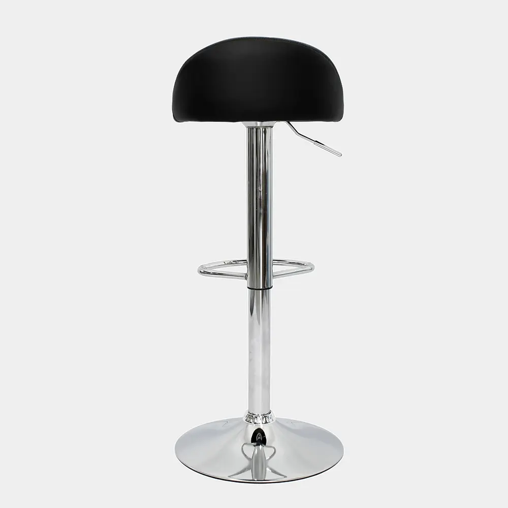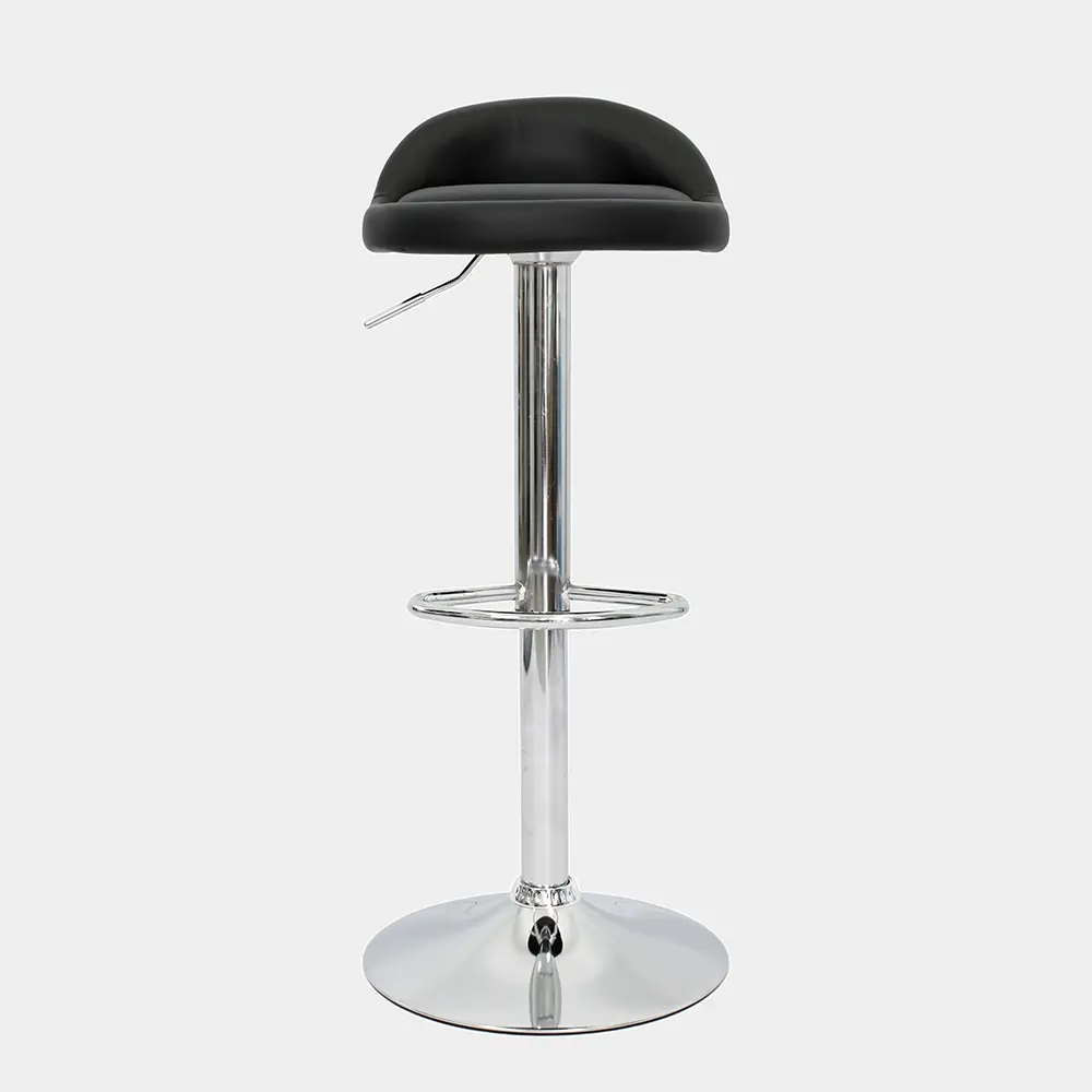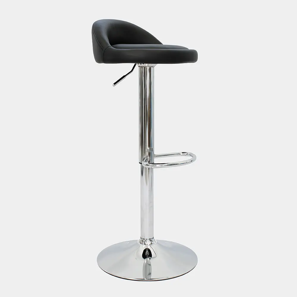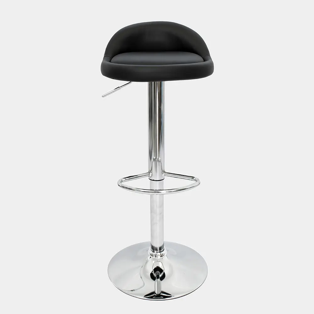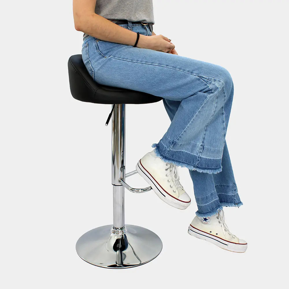 Banqueta de altura regulable con estructura de caño tubular de acero curvado. El asiento está tapizado en eco cuero. El acabado de las patas es cromado. Incluye tornillos y arandelas para armar.