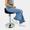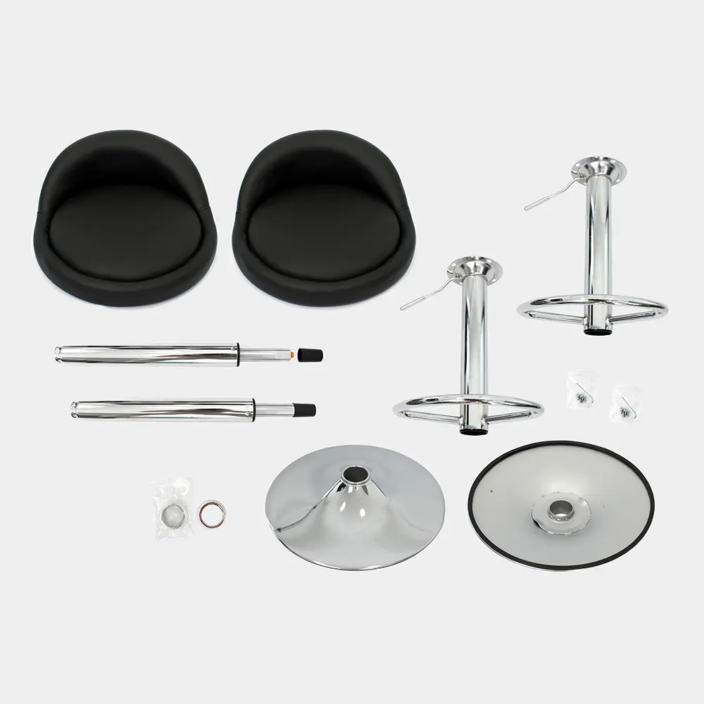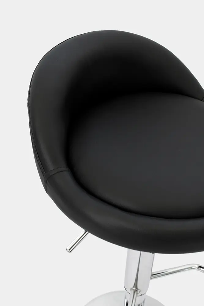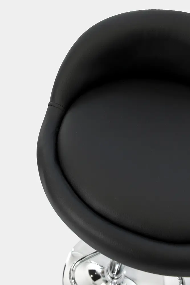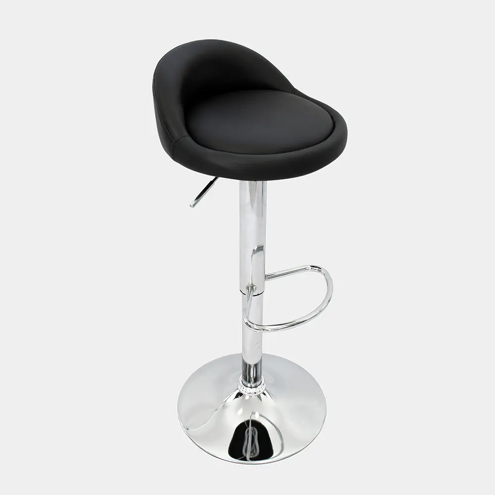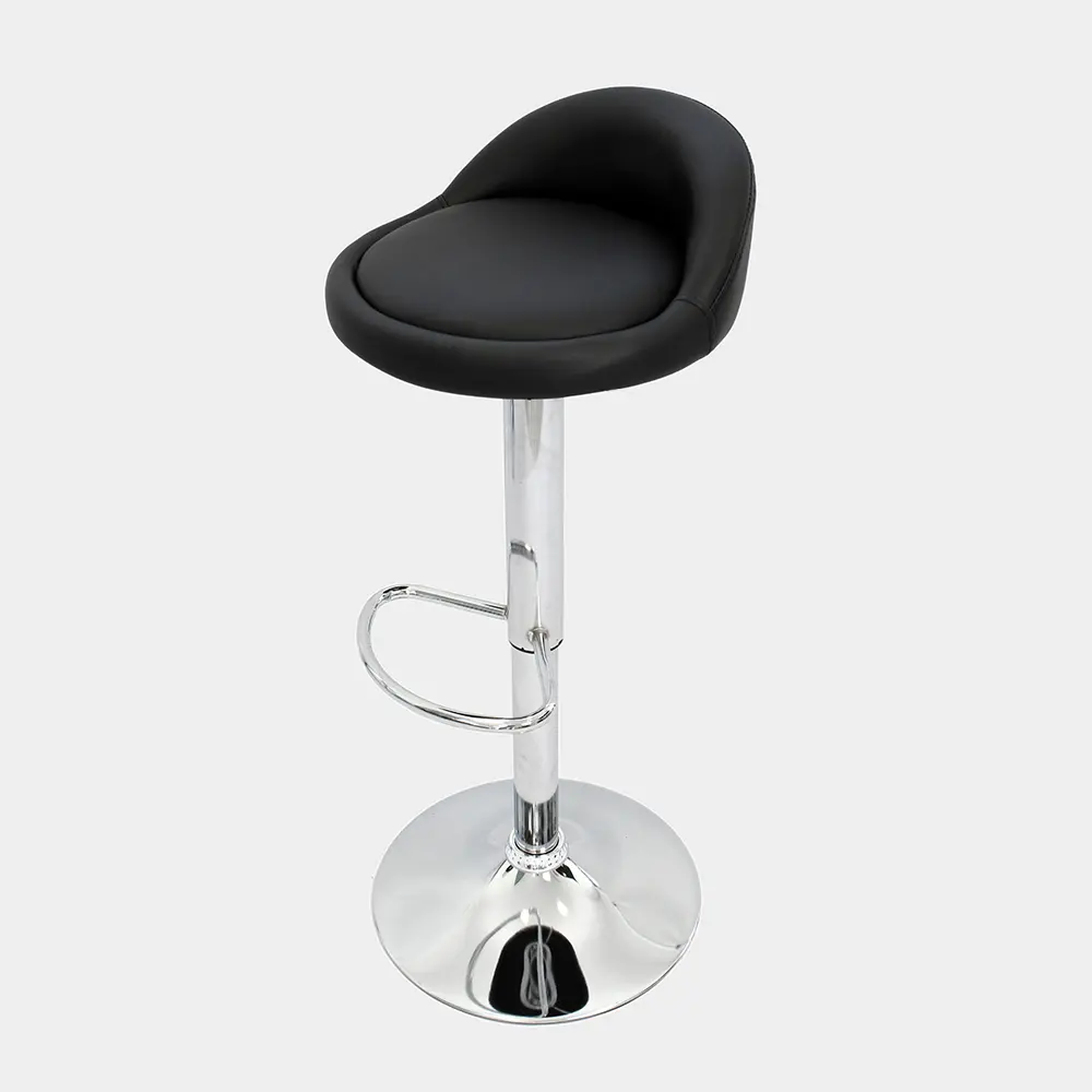 Banqueta de altura regulable con estructura de caño tubular de acero curvado. El asiento está tapizado en eco cuero. El acabado de las patas es cromado. Incluye tornillos y arandelas para armar.