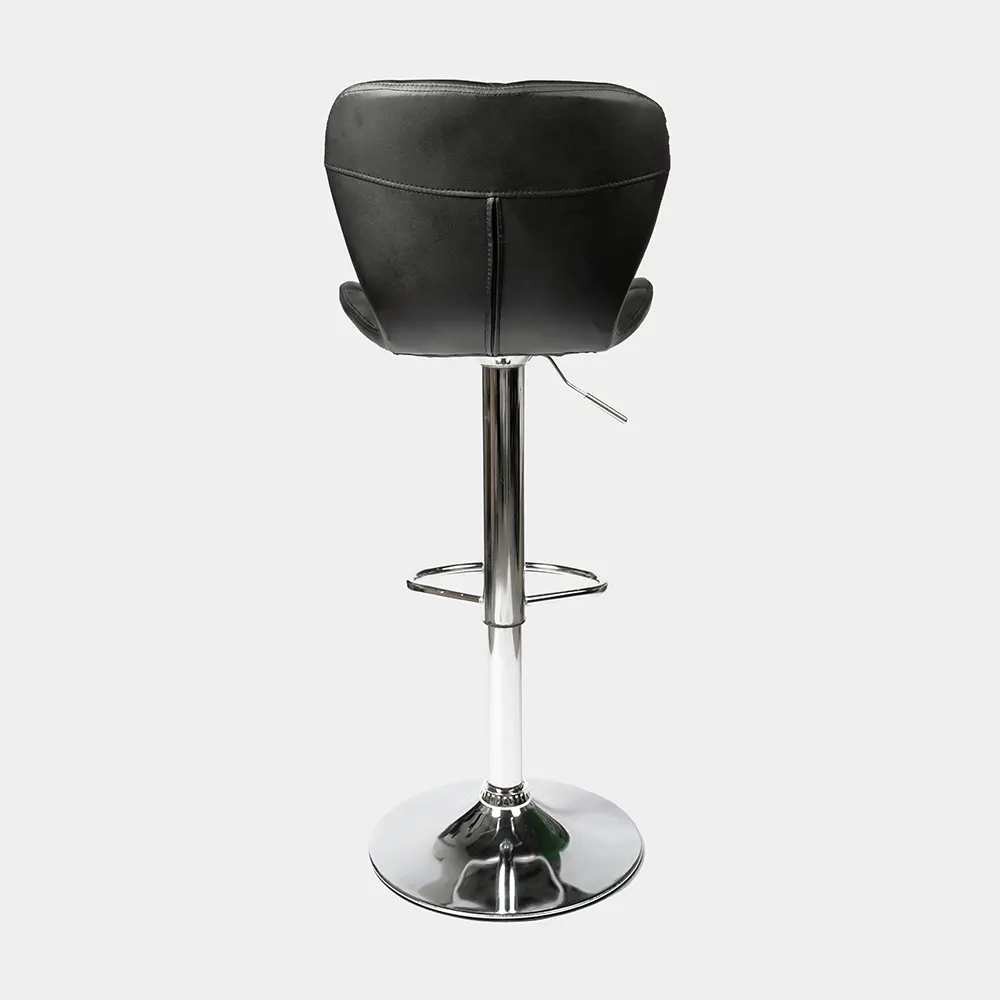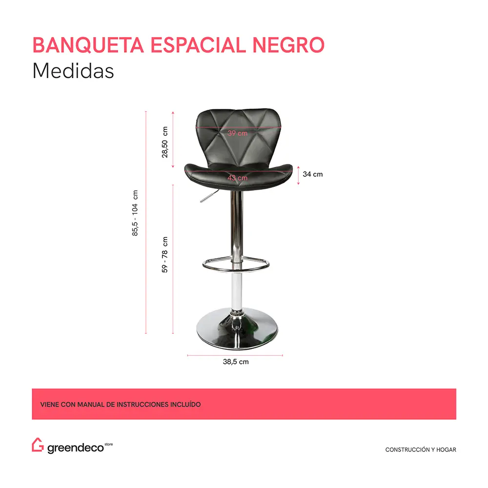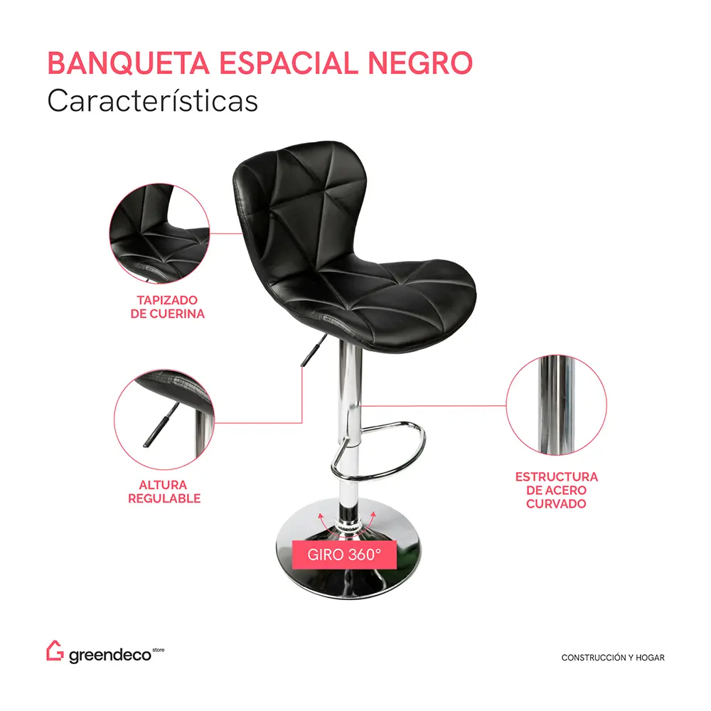 Banqueta de altura regulable con estructura de caño tubular de acero curvado. El asiento está tapizado de eco cuero. Incluye tornillos y arandelas para armar.
