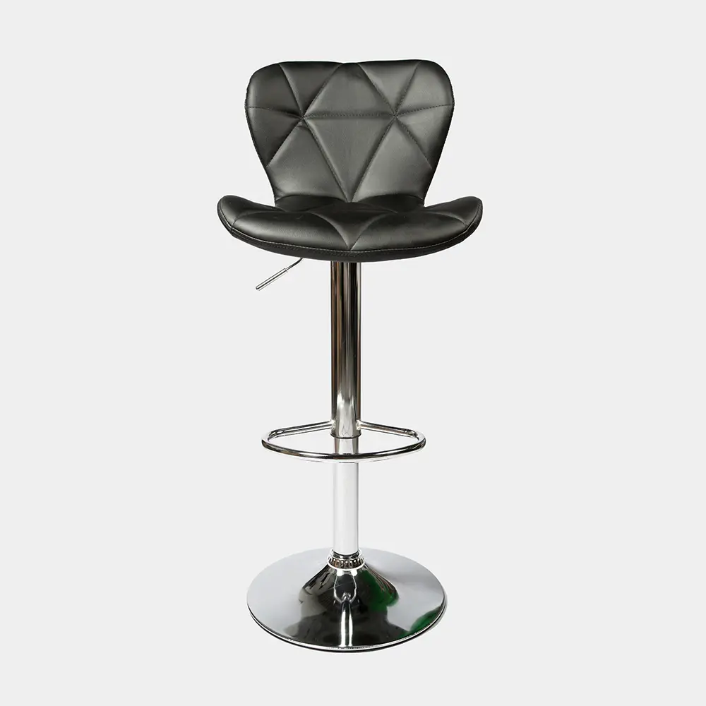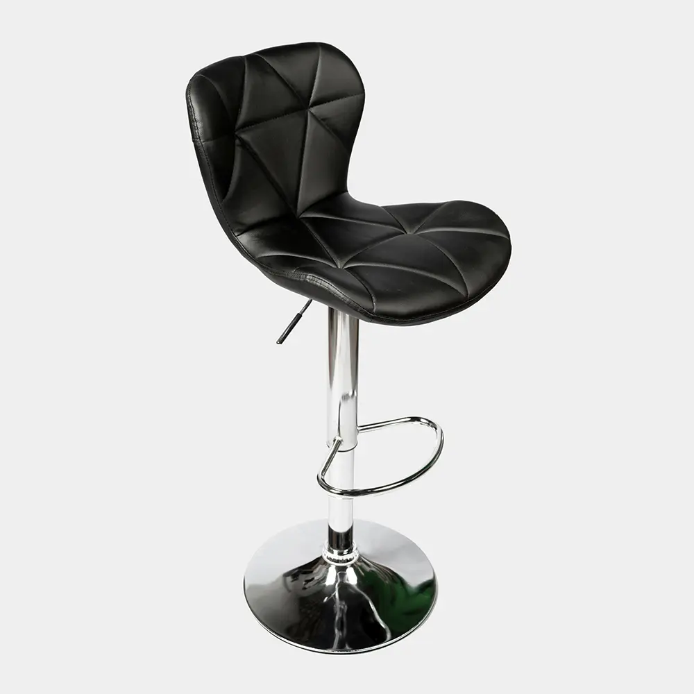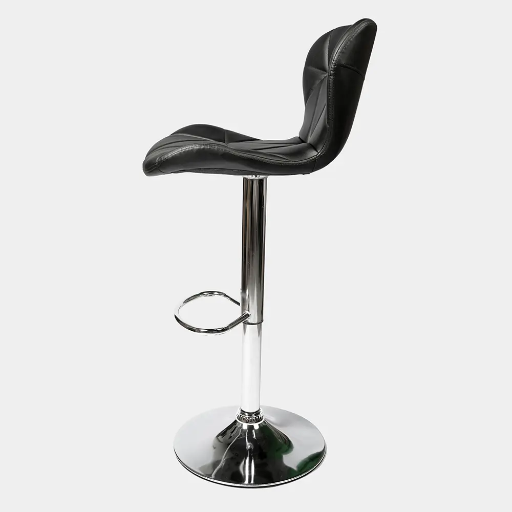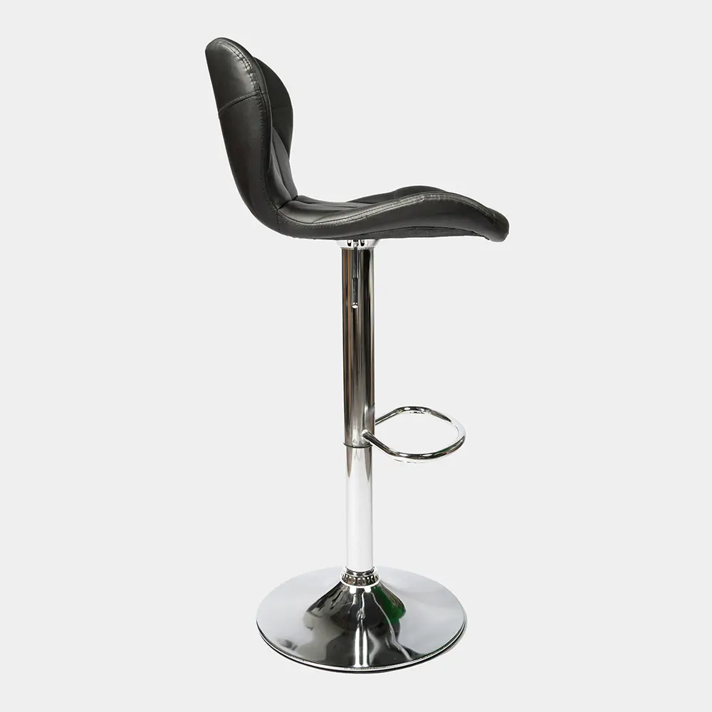 Banqueta de altura regulable con estructura de caño tubular de acero curvado. El asiento está tapizado de eco cuero. Incluye tornillos y arandelas para armar.