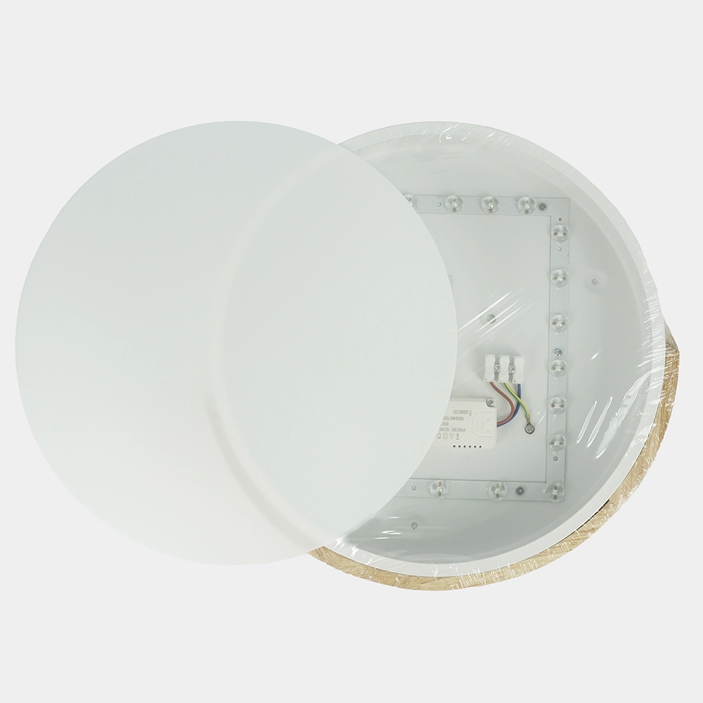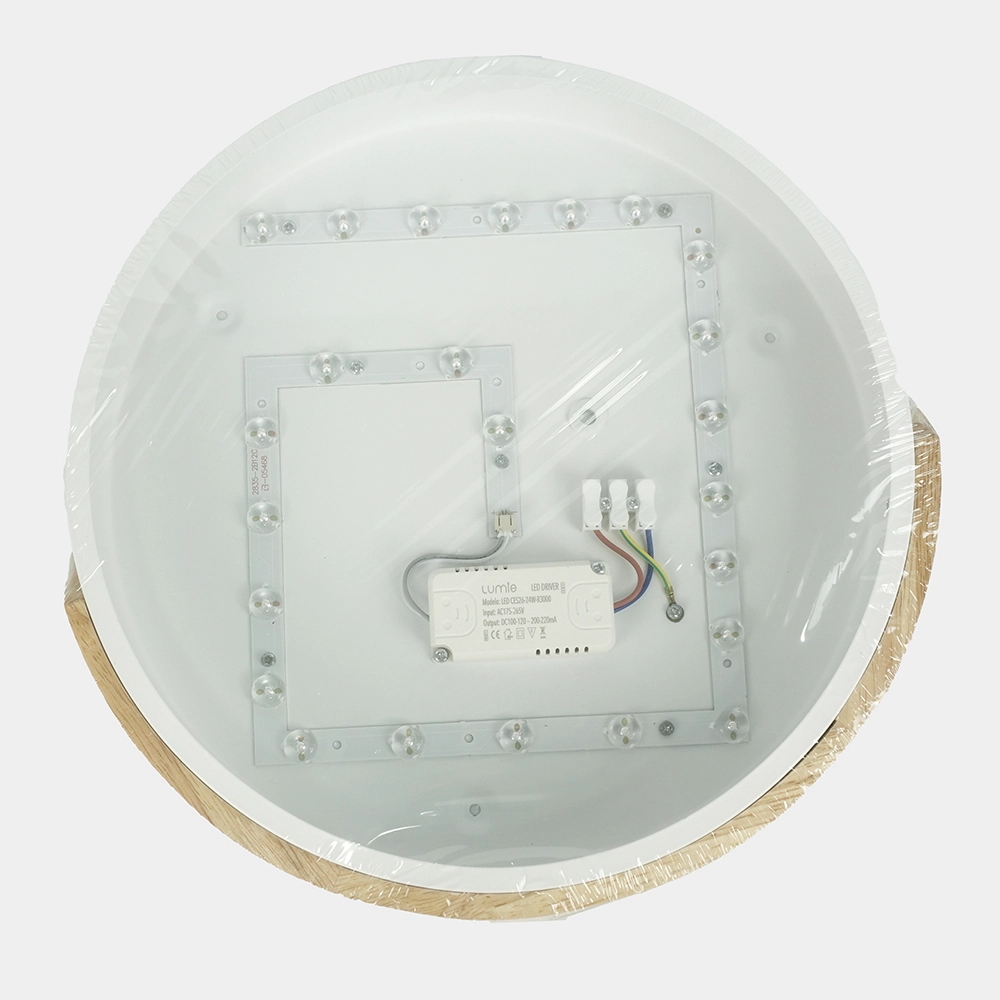 | Material | Cuerpo de aluminio inyectado, revestimiento de madera y difusor de PC (clase III) |