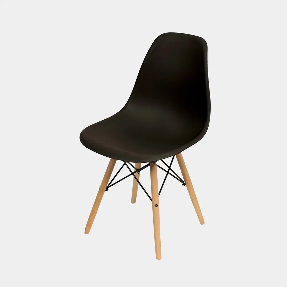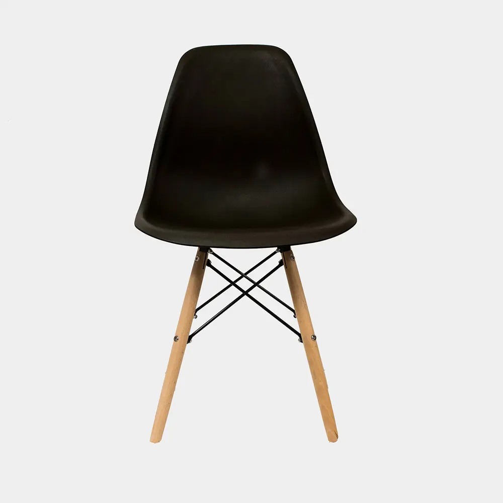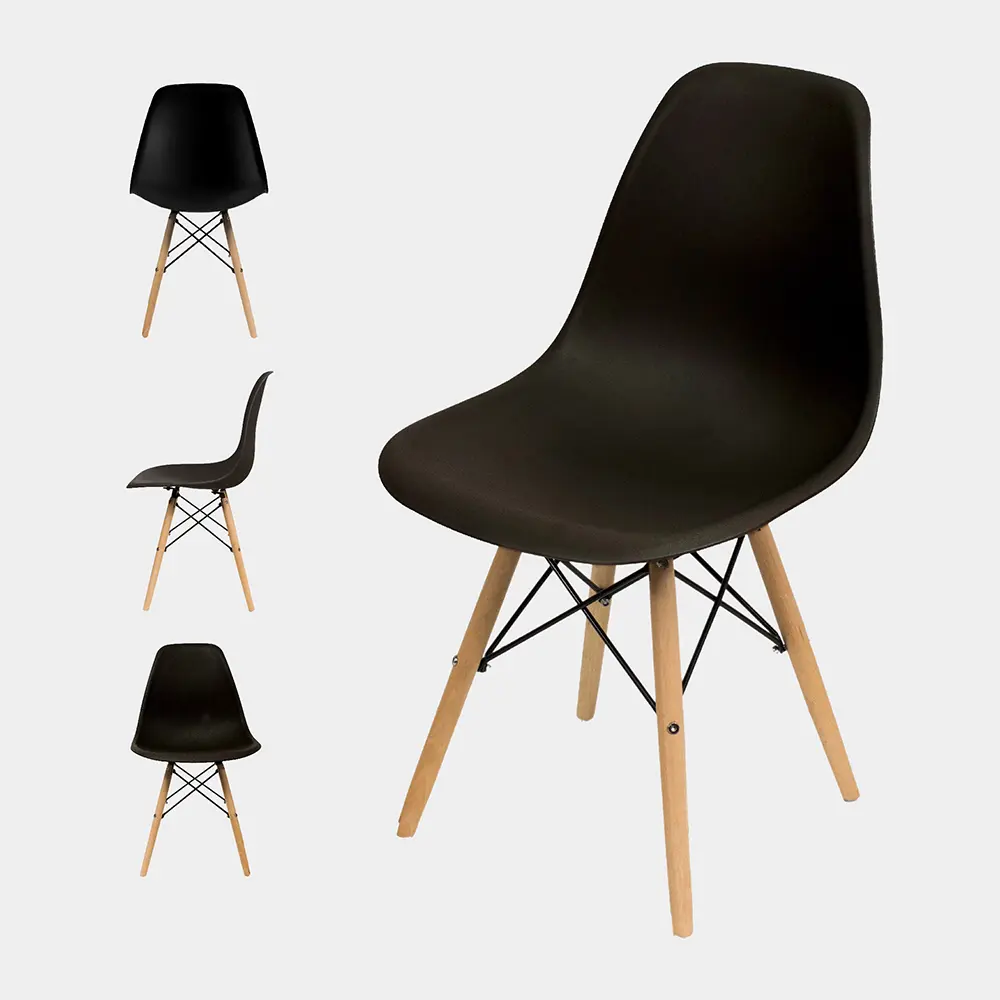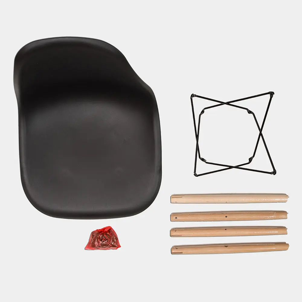 La Silla Eames tiene estructura de plástico polipropileno. Tiene el asiento acolchado compuesto de plástico ABS, incluye tornillos y arandelas para armar.