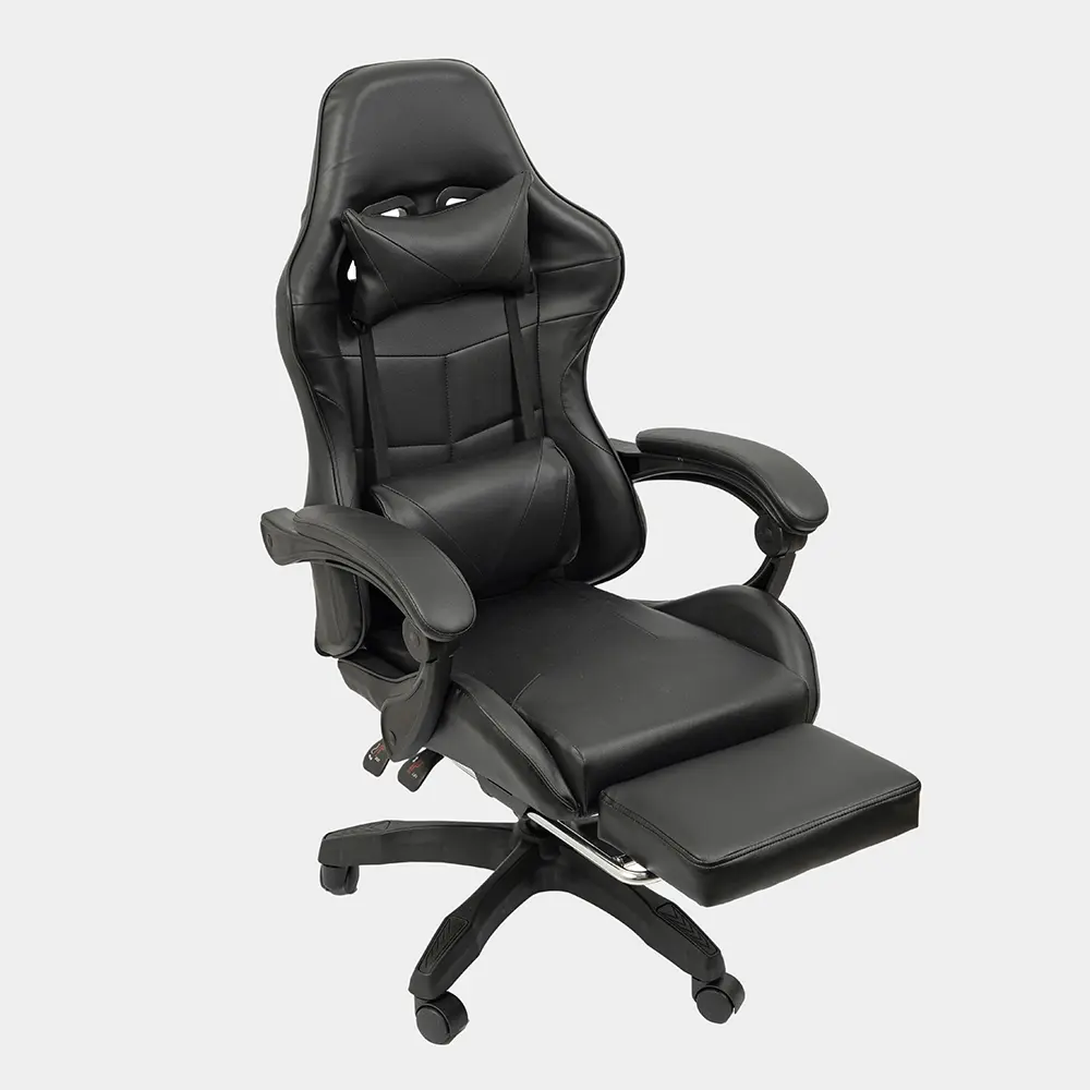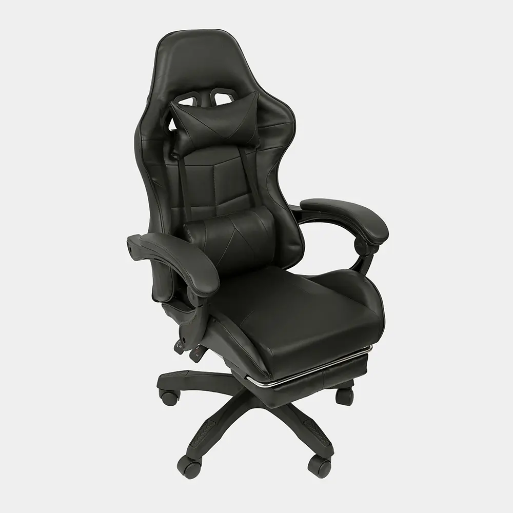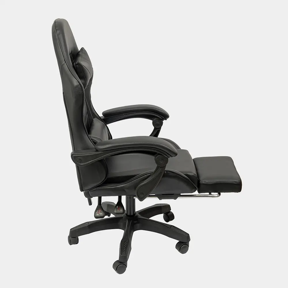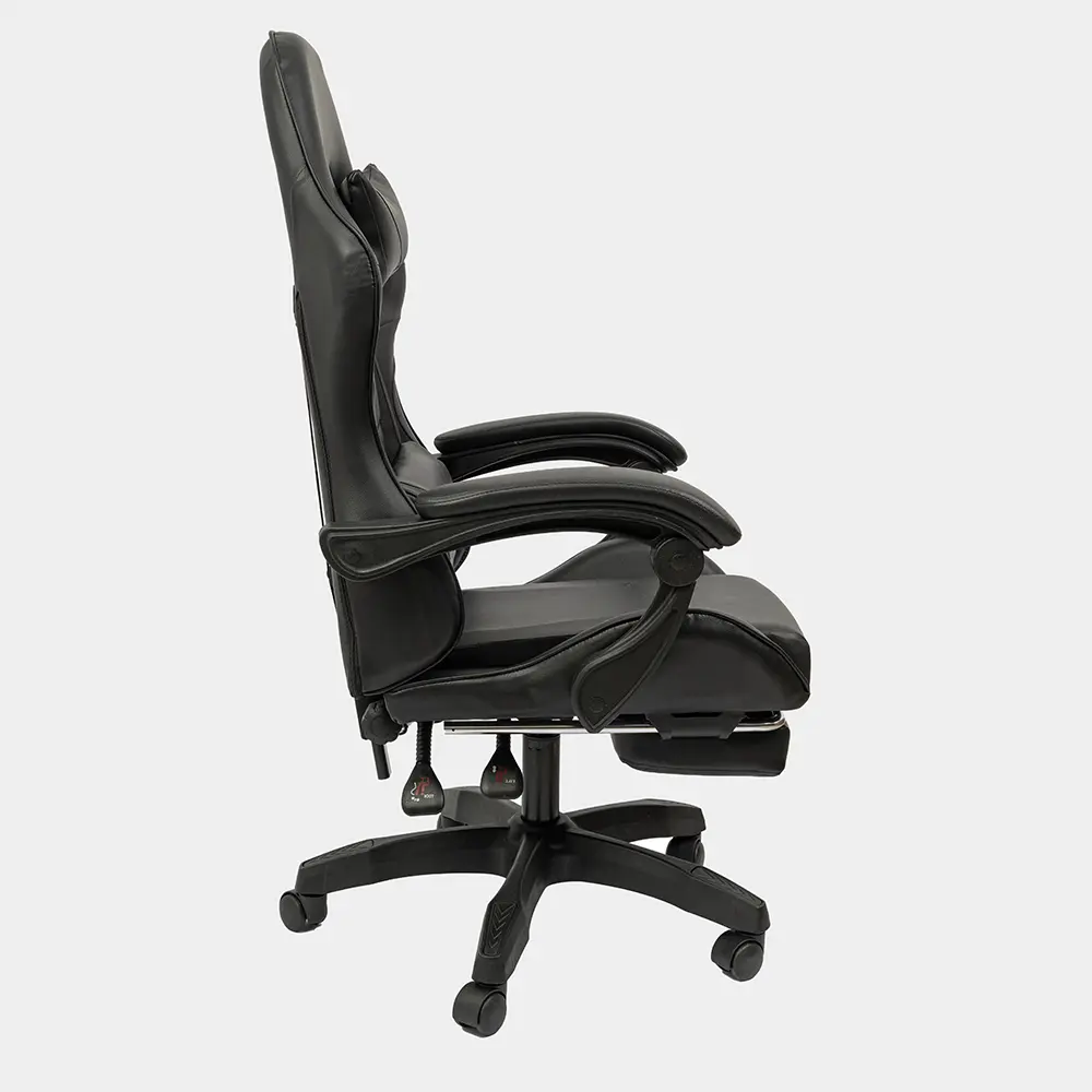 Silla de altura regulable con estructura de caño tubular de acero. El asiento está tapizado en eco cuero. El respaldo es regulable basculante. Posee apoyapiés y almohada para la zona del cuello y para la zona lumbar. Incluye tornillos y arandelas para armar.