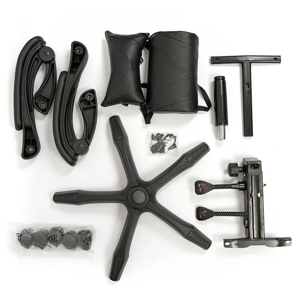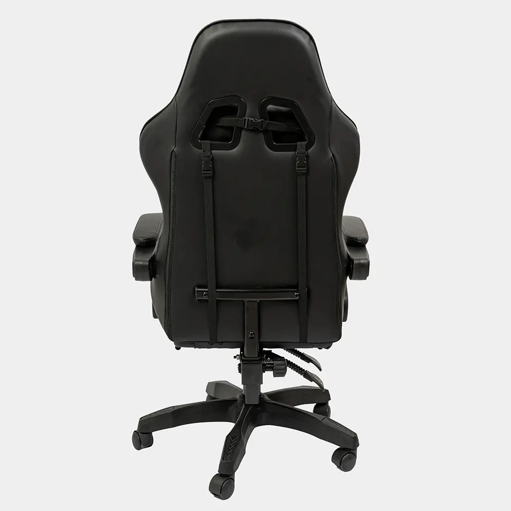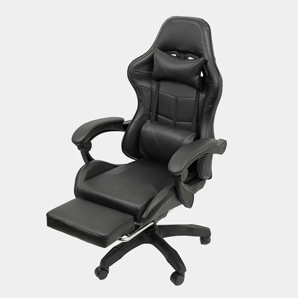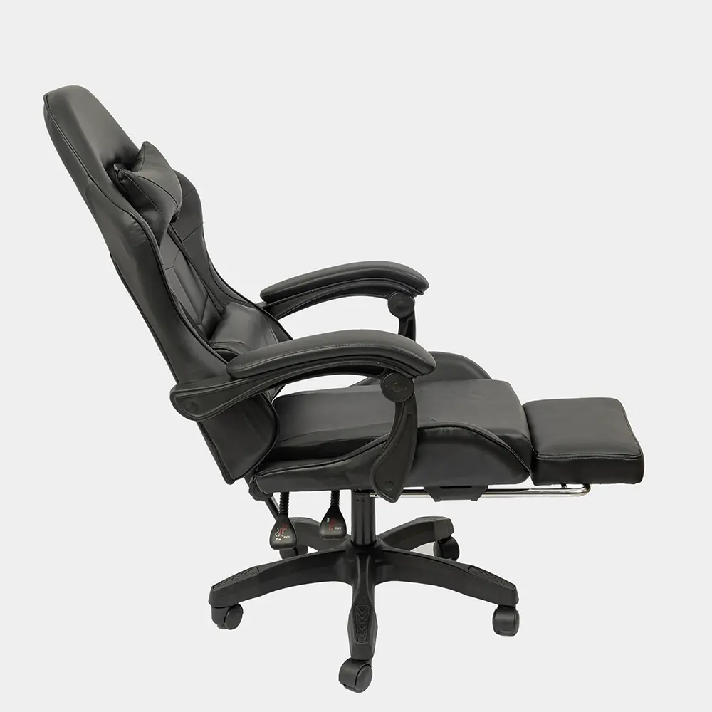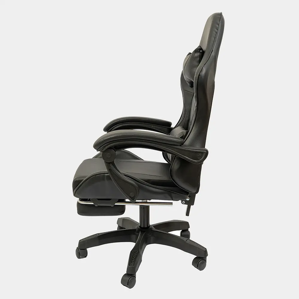 Silla de altura regulable con estructura de caño tubular de acero. El asiento está tapizado en eco cuero. El respaldo es regulable basculante. Posee apoyapiés y almohada para la zona del cuello y para la zona lumbar. Incluye tornillos y arandelas para armar.