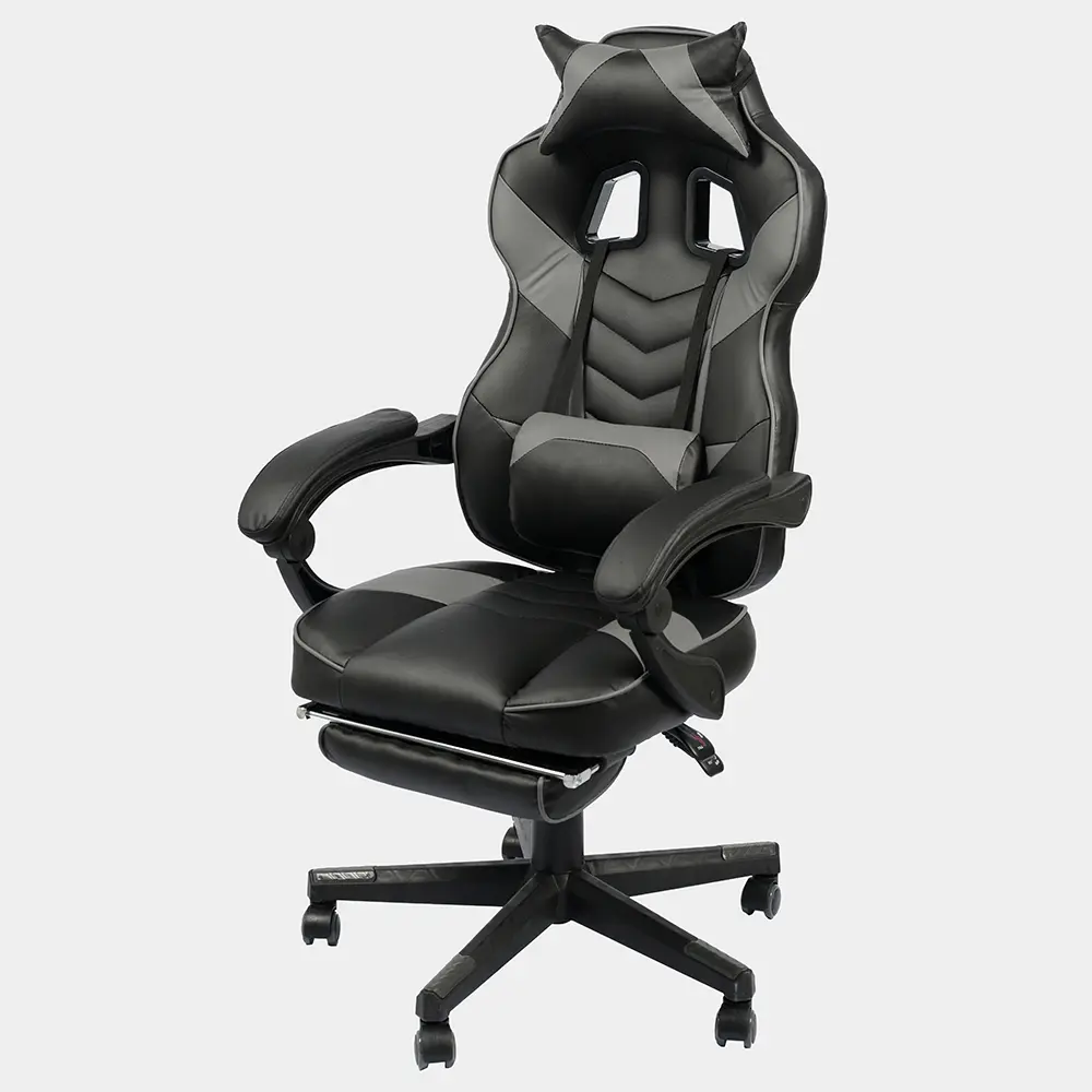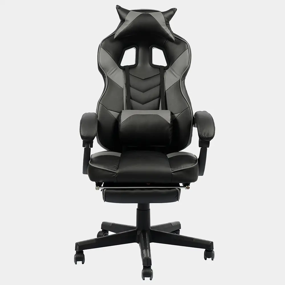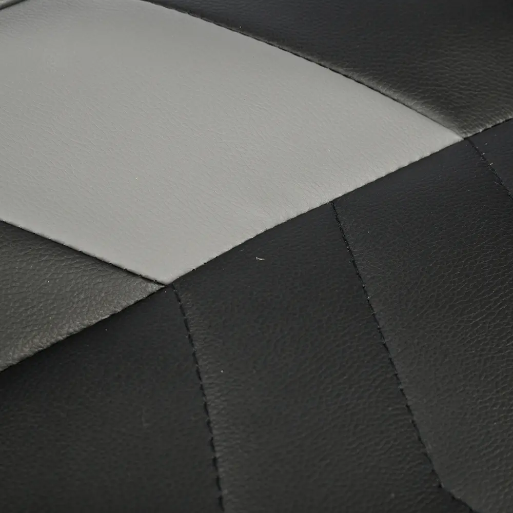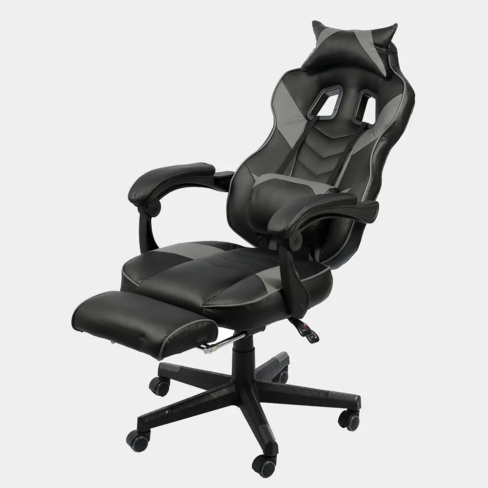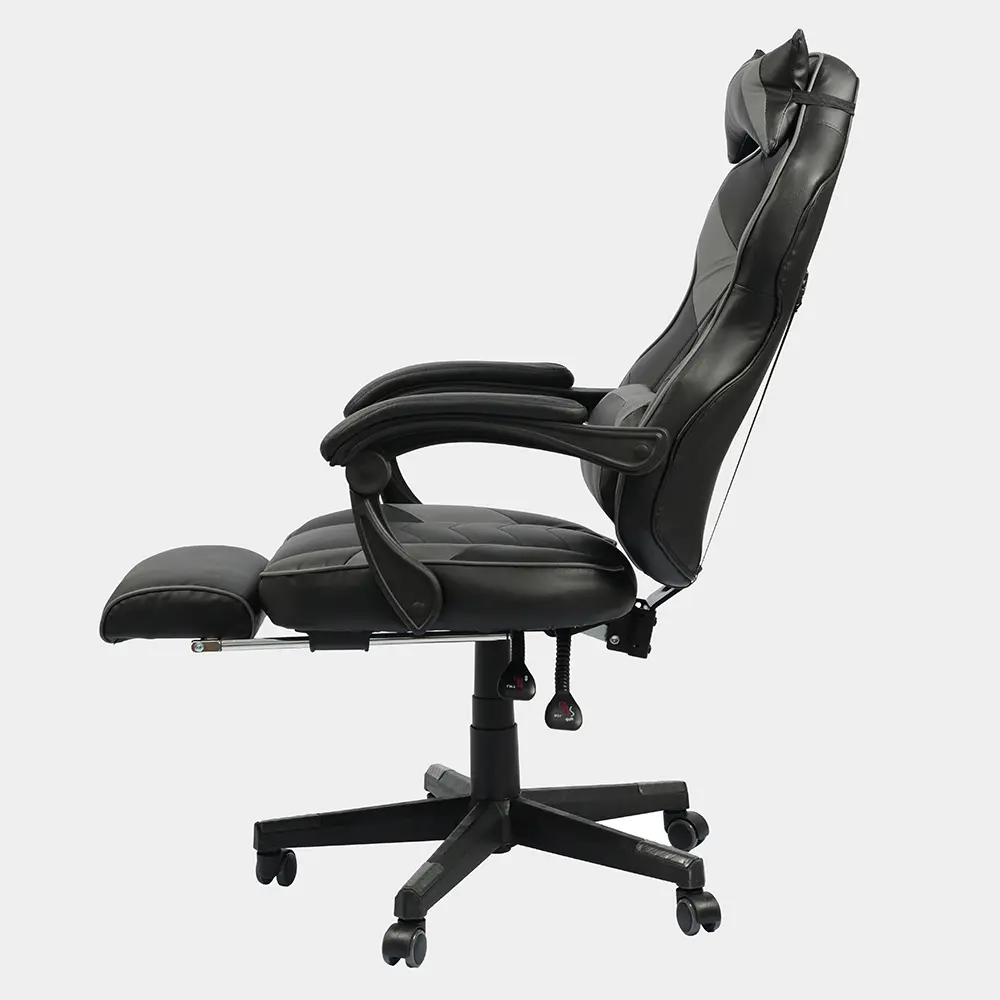 Silla de altura regulable con estructura de caño tubular de acero. El material de la estrella es de PVC. El asiento esta tapizado en eco cuero. Posee almohada para el cuello y la zona lumbar, también posee apoyapiés. Incluye tornillos y arandelas para armar.