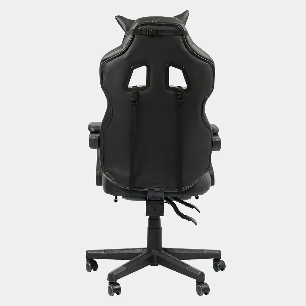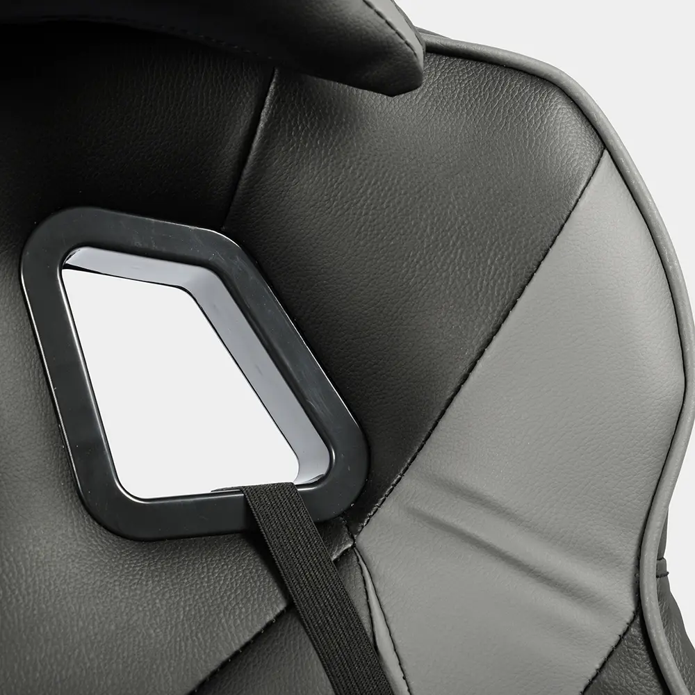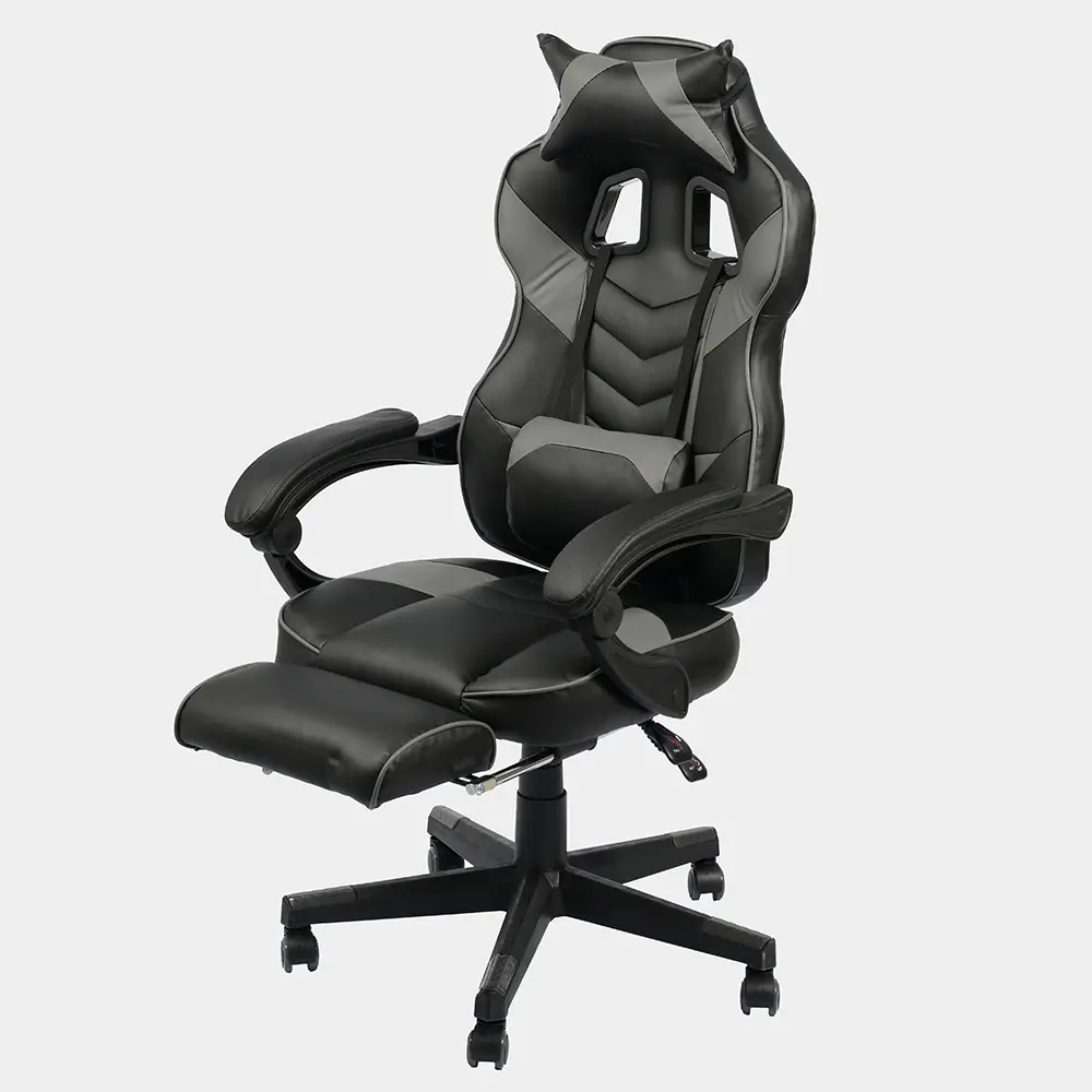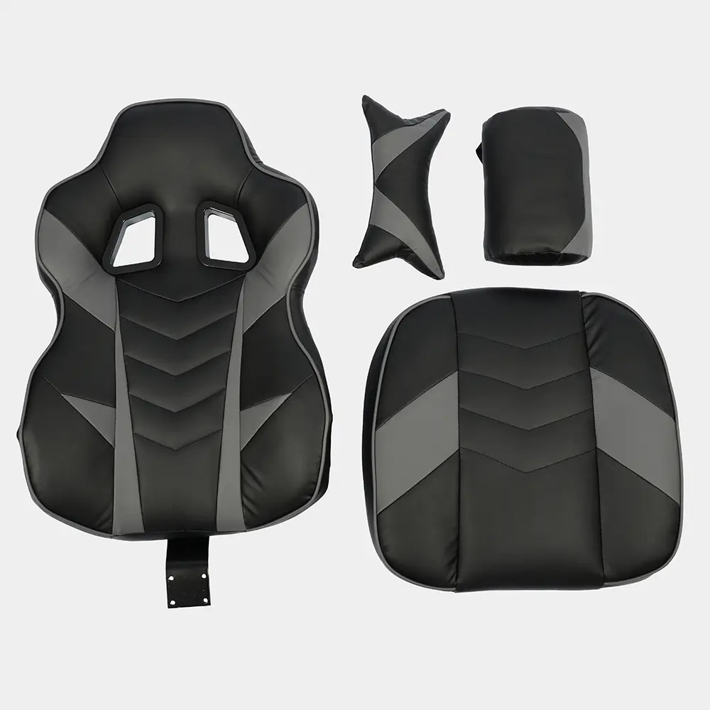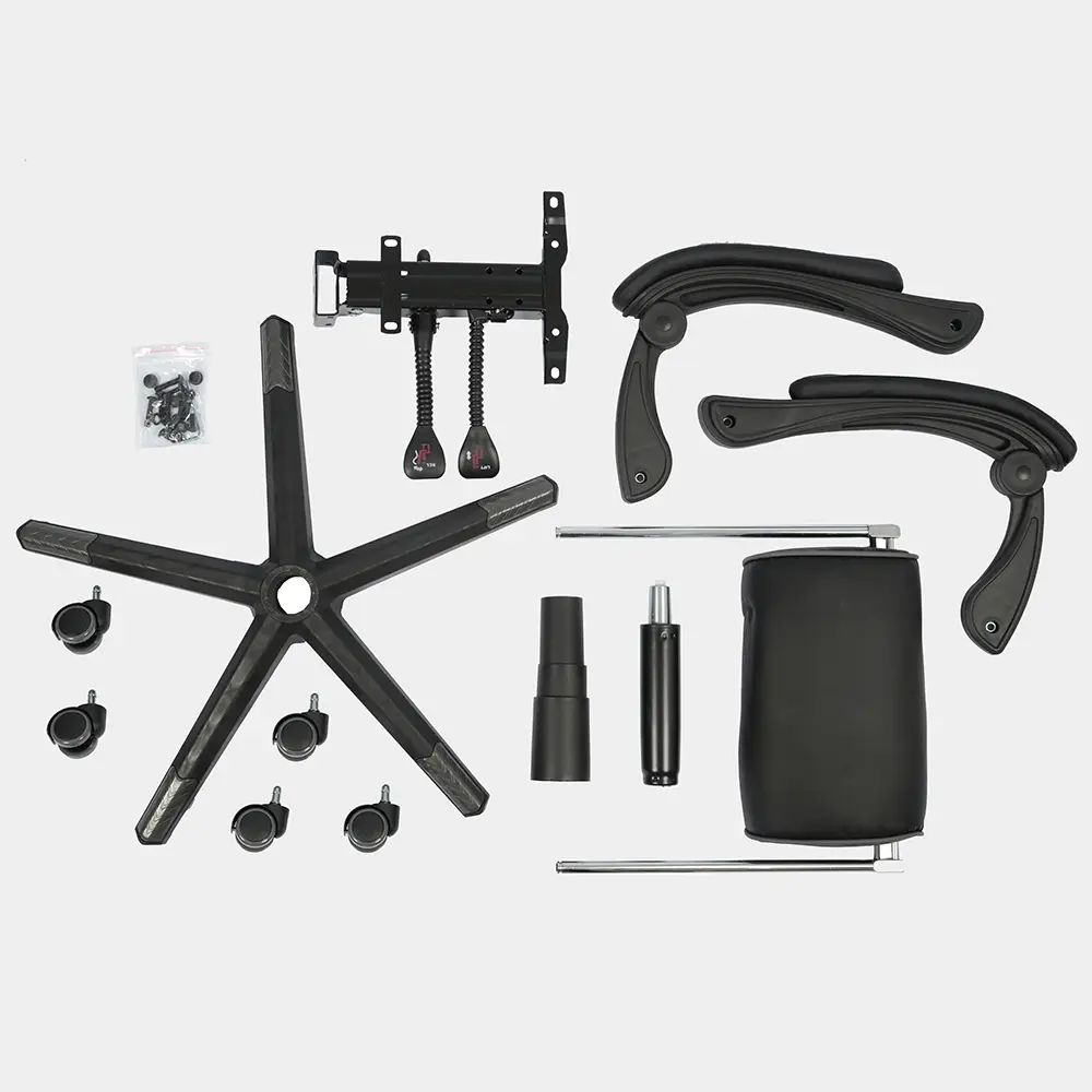 Silla de altura regulable con estructura de caño tubular de acero. El material de la estrella es de PVC. El asiento esta tapizado en eco cuero. Posee almohada para el cuello y la zona lumbar, también posee apoyapiés. Incluye tornillos y arandelas para armar.
