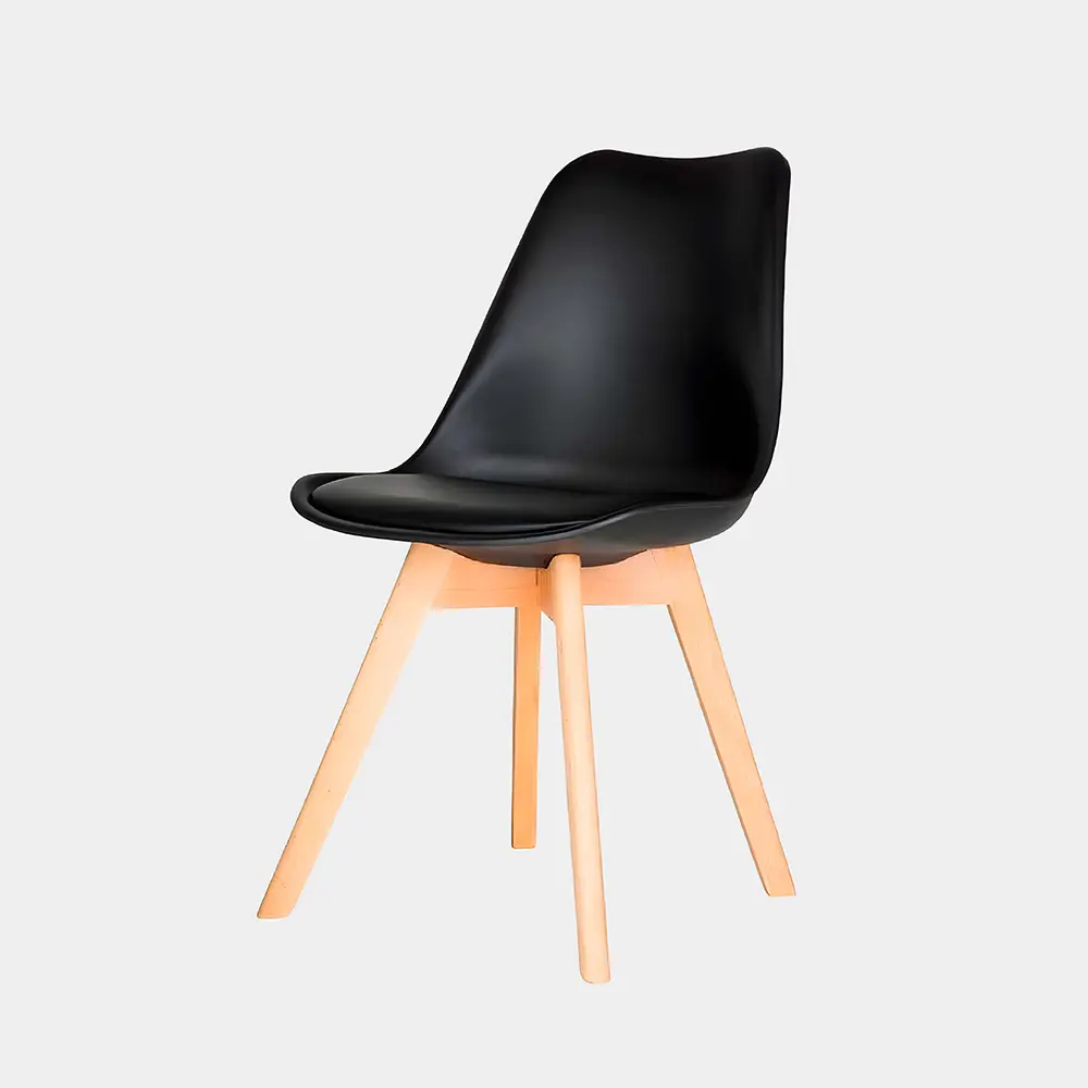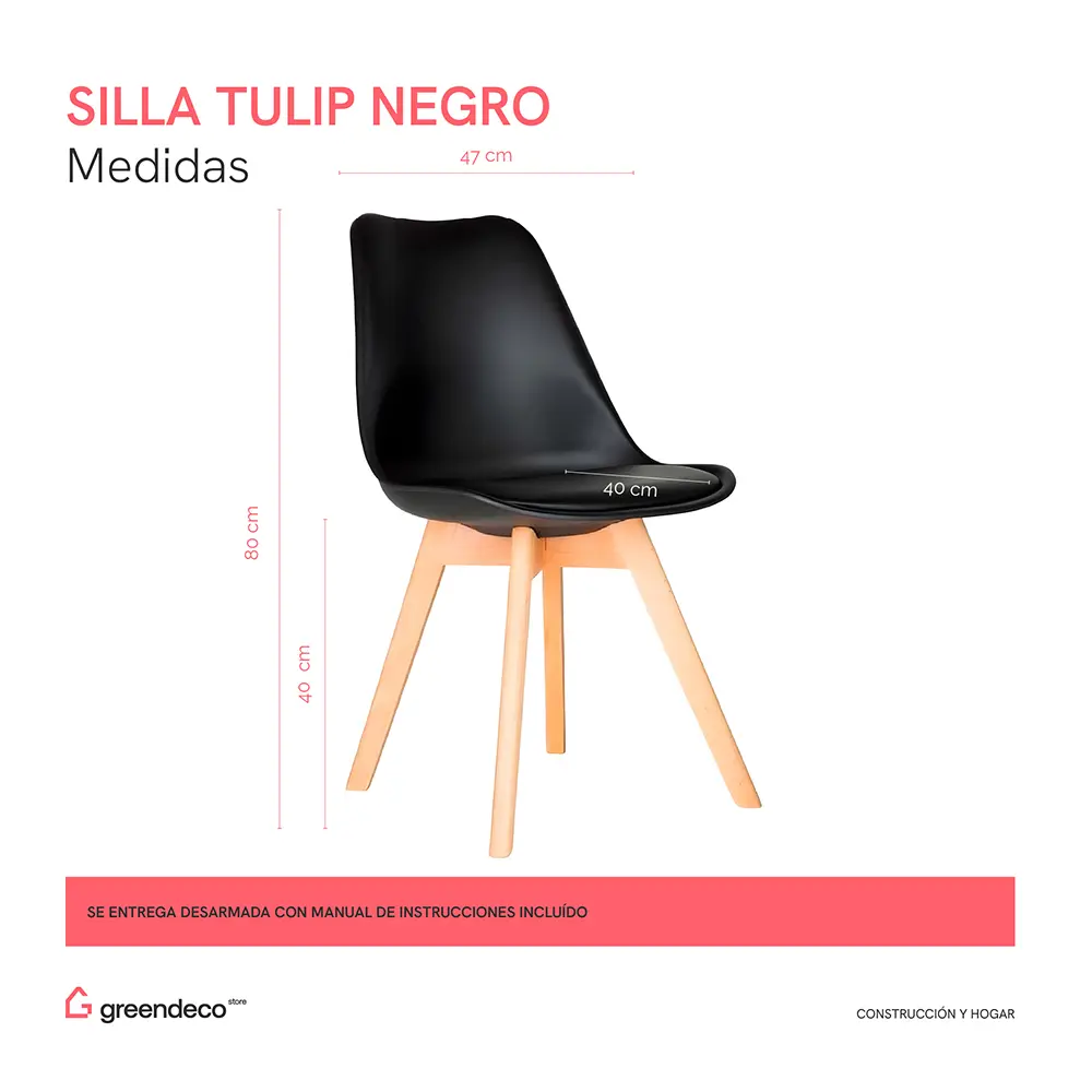 La Silla Tulip tiene estructura de plástico y madera. Tiene el asiento acolchado compuesto de polipropileno, incluye tornillos y arandelas para armar.