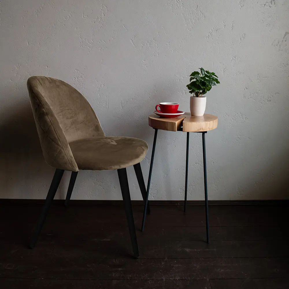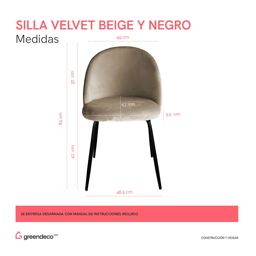 La Silla Velvet tiene la estructura de caño tubular de acero curvado. Tiene el asiento acolchado tapizado con Pana, incluye tornillos y arandelas para armar.