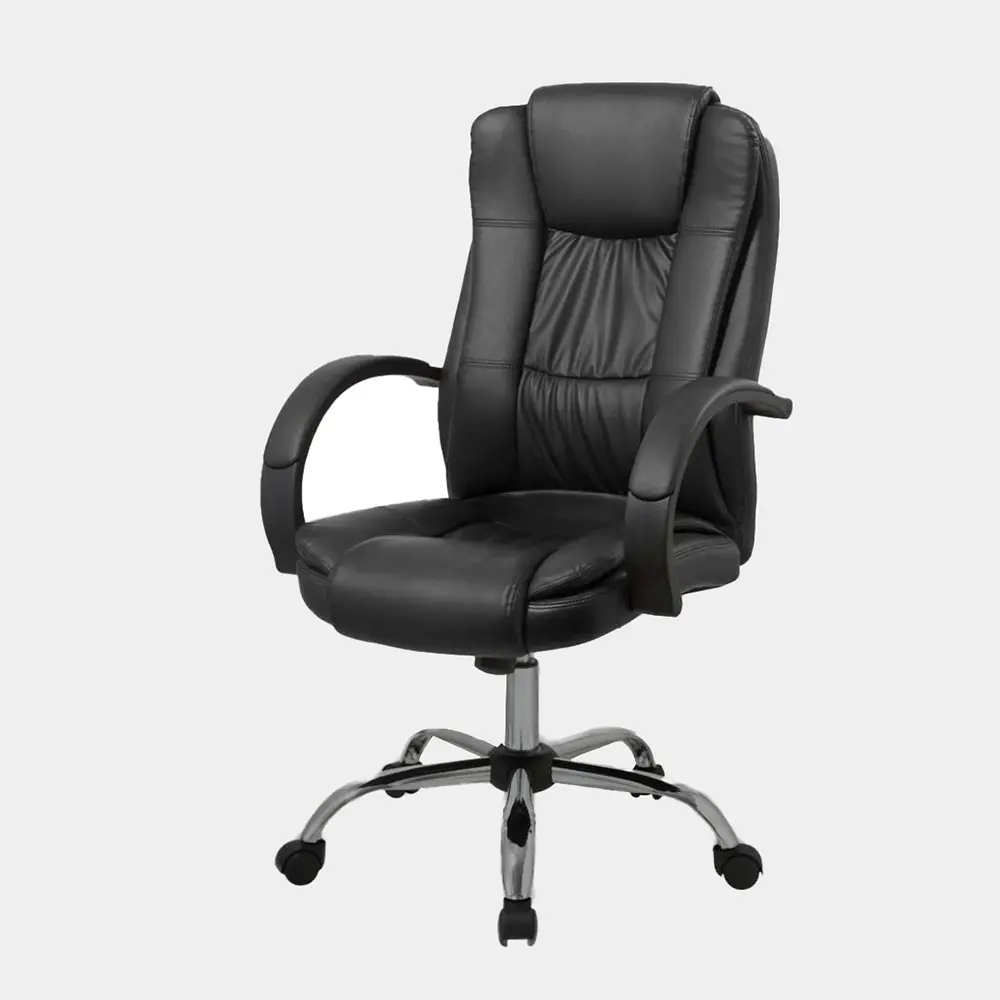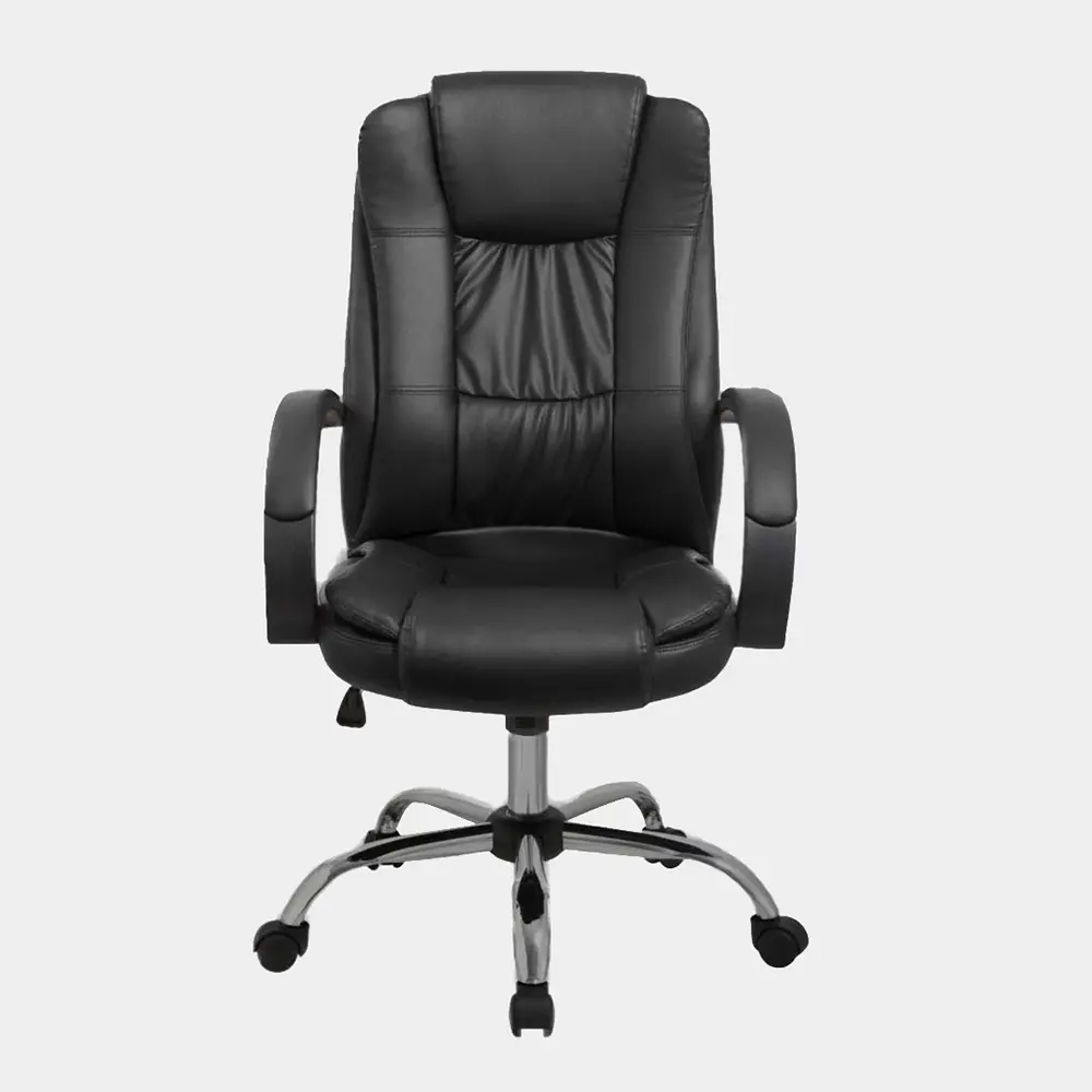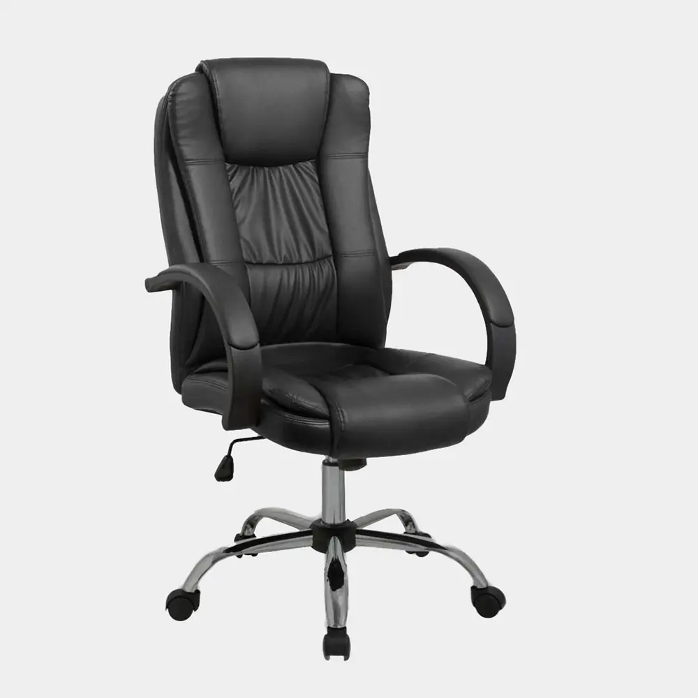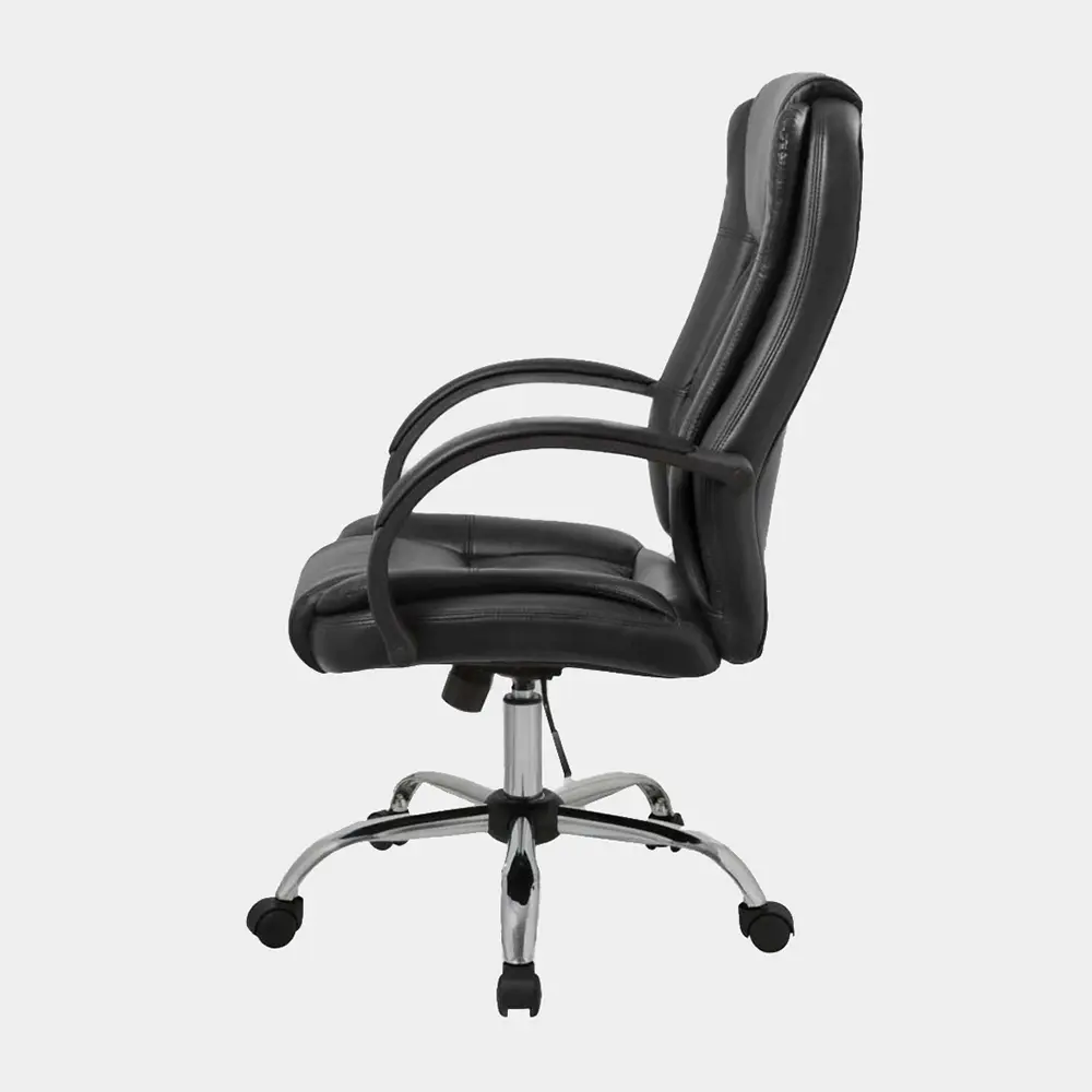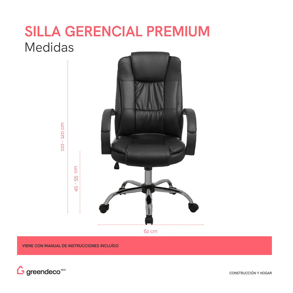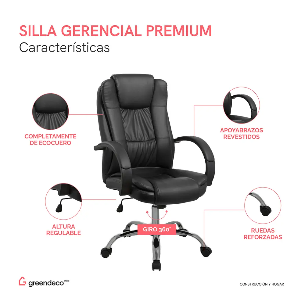 Sillón de altura regulable con estructura de caño tubular de acero. El asiento está tapizado en eco cuero y su respaldo es regulable basculante. Los apoyabrazos están revestidos y las ruedas son reforzadas. El acabado de las patas es cromado. Incluye tornillos y arandelas para armar.